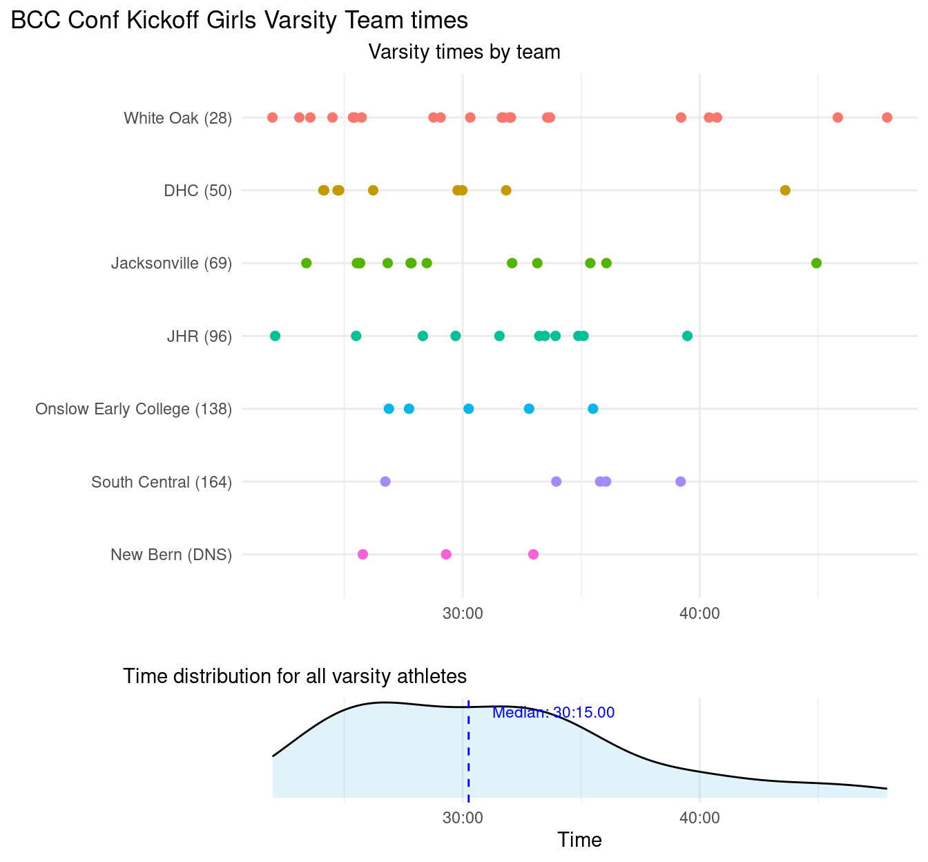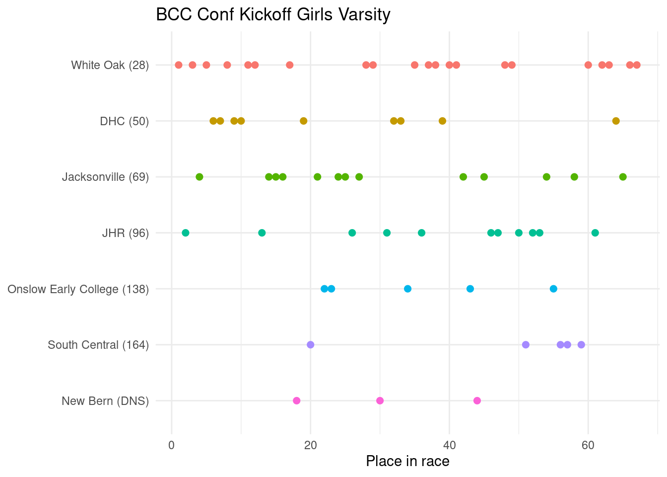 The course had a few more hills than typical ENC fare. Note: all spelling mistakes are from MileSplit.