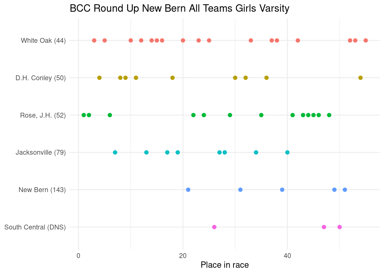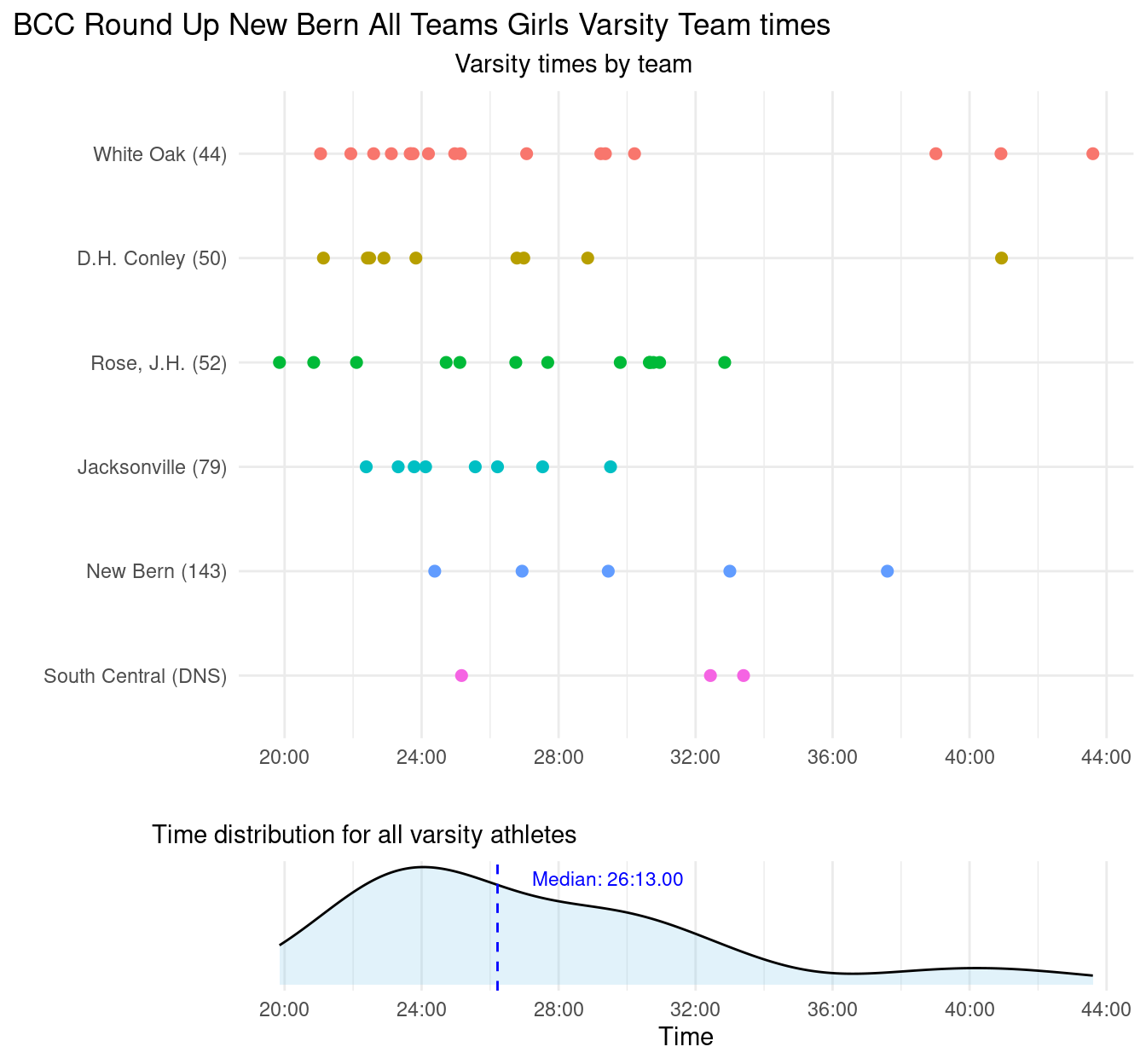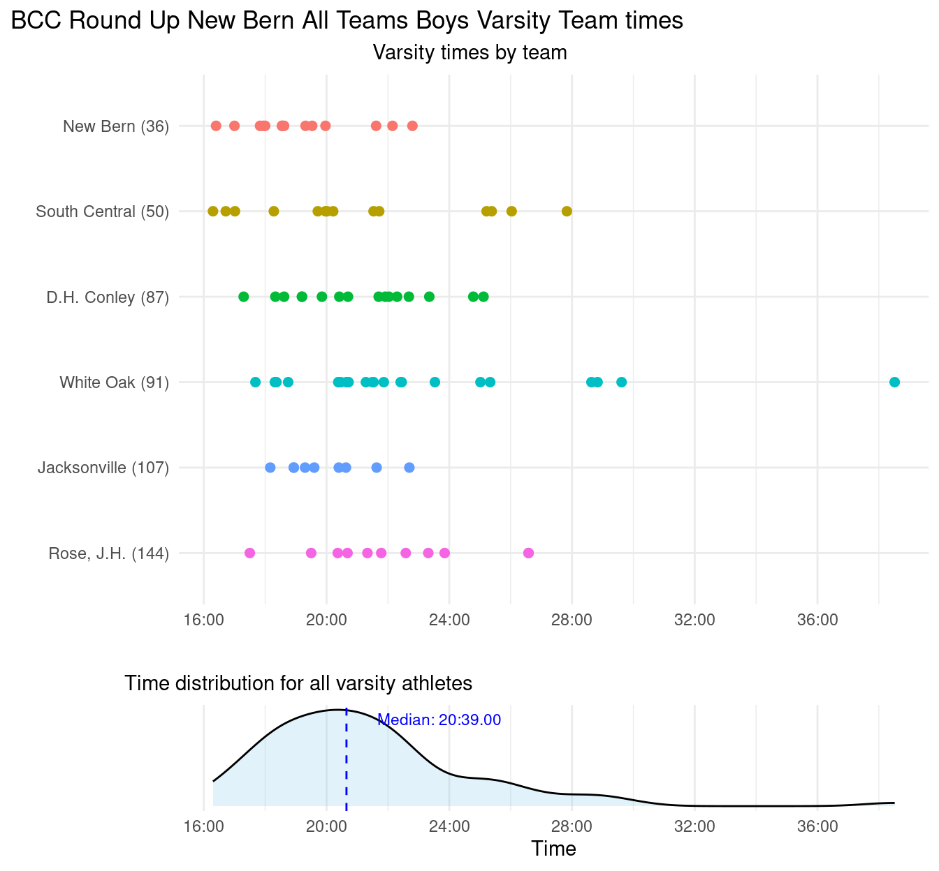 The course was flat and fast, and the weather was great, clear and warm, but not too hot. The New Bern course is likely only about 4800m.