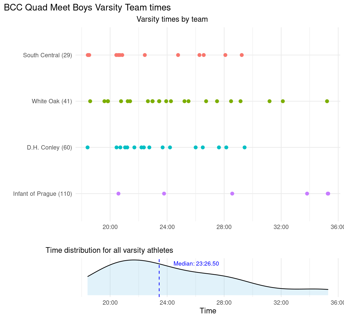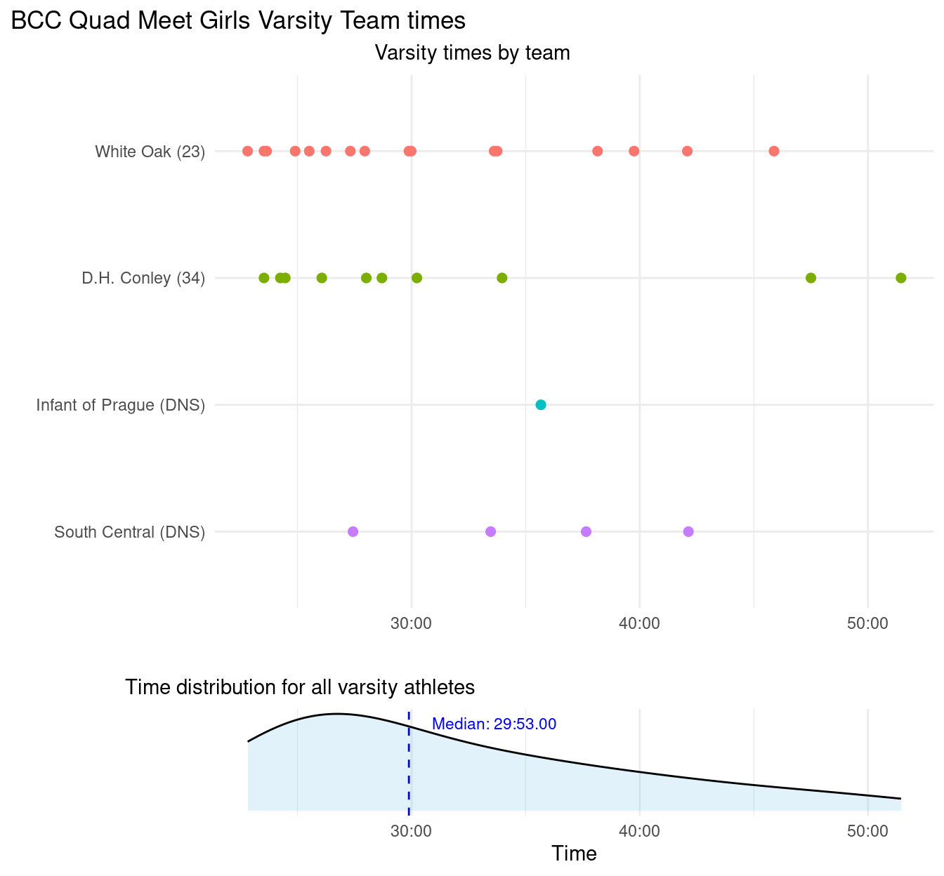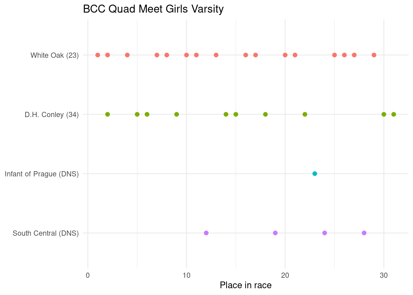 The course had a few more hills than typical ENC fare. Note: all spelling mistakes are from MileSplit.